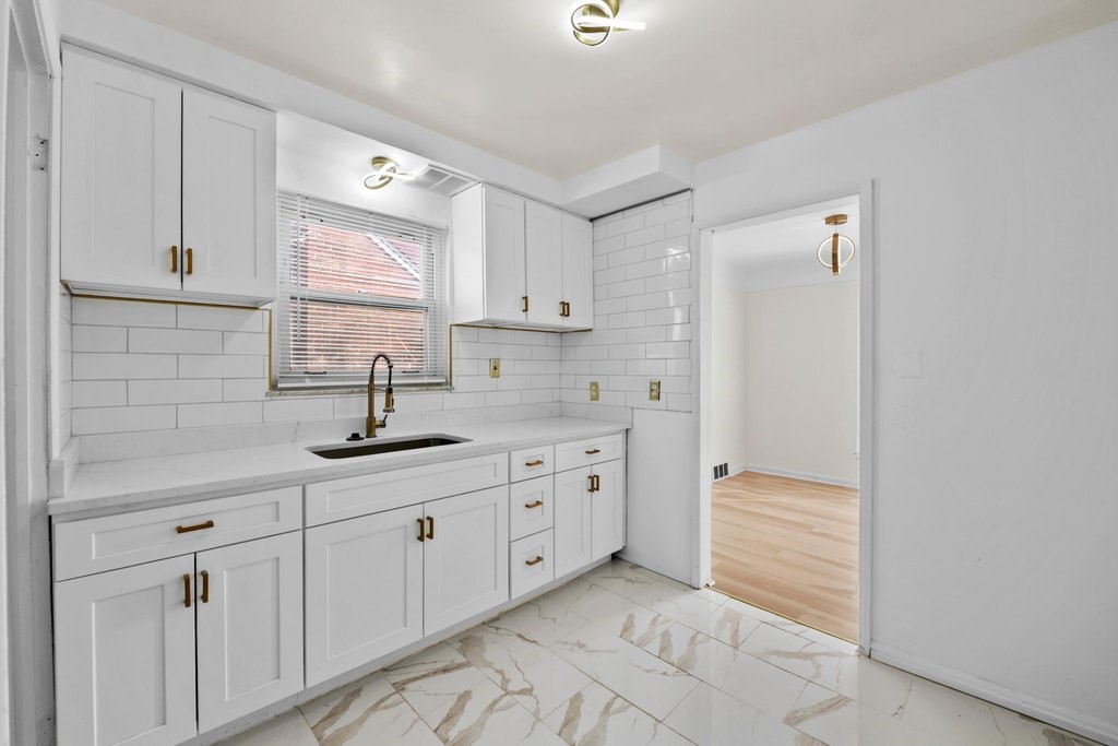 Charming, move-in ready bungalow with great curb appeal and a welcoming covered front porch, located directly across the street from a park. Inside, you'll find a bright, updated kitchen featuring white cabinetry, modern backsplash, and stylish finishes that flow into a light-filled dining area. The home also boasts a beautifully renovated bathroom with sleek tile work and contemporary fixtures. Additional highlights include spacious bedrooms, fresh interior updates, and a 1-car garage, with the seller offering a 1-year home warranty for added peace of mind. A/C, water heater, and furnace will be installed prior to appraisal, making this an excellent opportunity for a first-time buyer, downsizing, or investment.